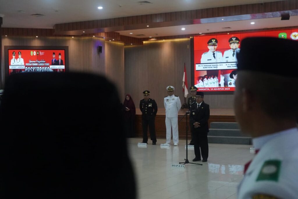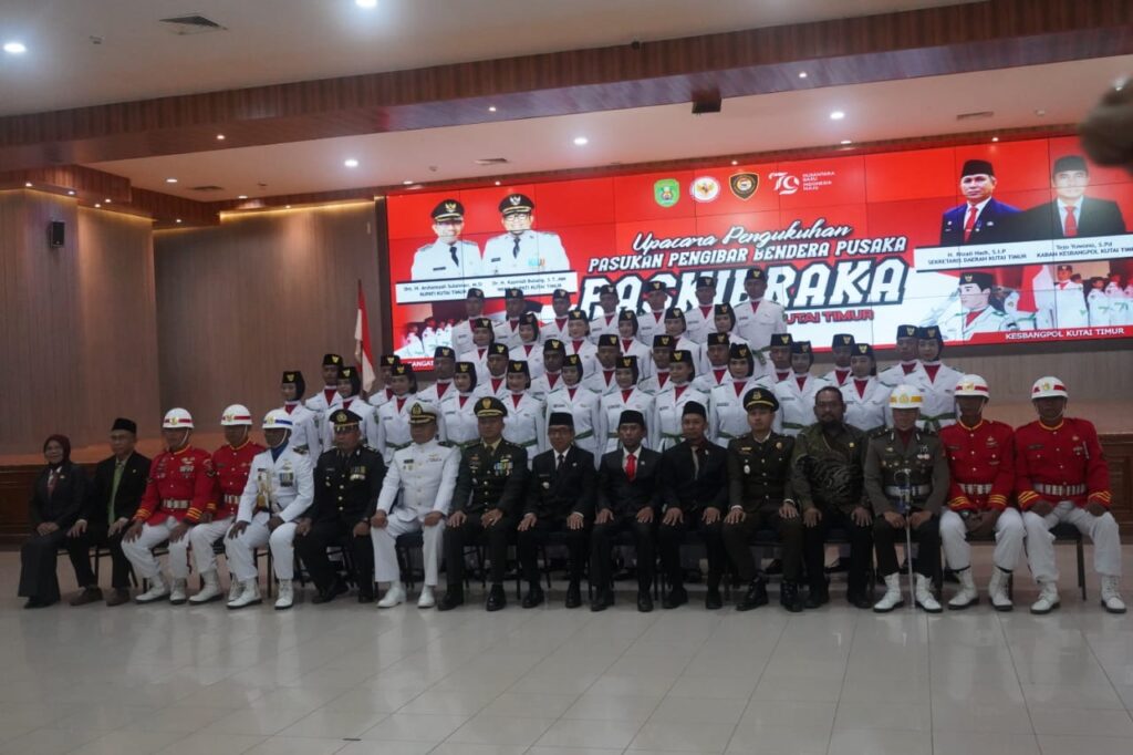 SANGATTA- Bupati Kutim Ardiansyah Sulaiman secara resmi mengukuhkan Pasukan Pengibar Bendera Pusaka (Paskibraka) Kutim pada Jumat (16/8/2024) pagi di Ruang Akasia Gedung Serba Guna (GSG) Bukit Pelangi.