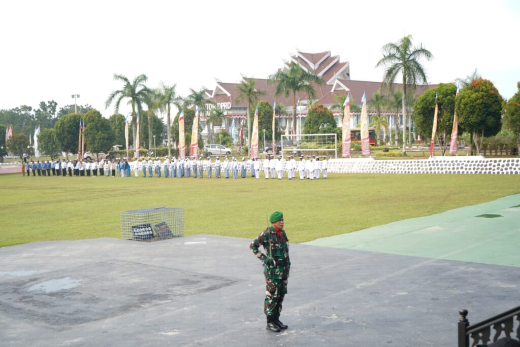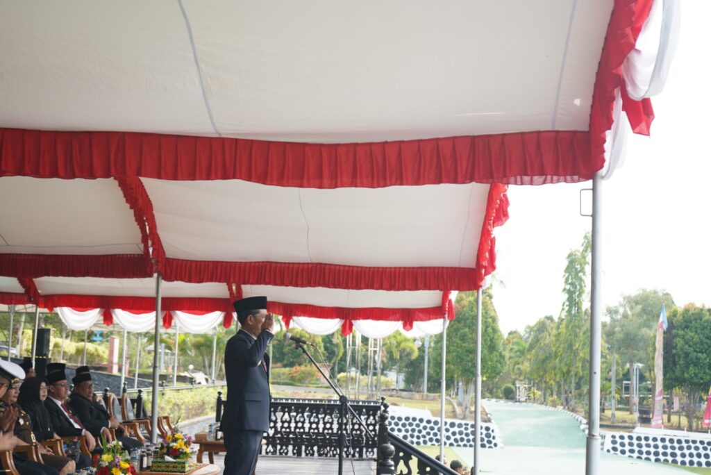 SANGATTA – Pemerintah Kabupaten Kutai Timur (Kutim) melalui Badan Kesatuan Bangsa dan Politik menggelar upacara peringatan Hari Kesaktian Pancasila di halaman Kantor Bupati Kutim pada Selasa (1/10/2024) pagi. Upacara ini dihadiri oleh Penjabat Sementara (Pjs) Bupati Kutim Agus Hari Kesuma, beserta Asisten Pemerintahan dan Kesejahteraan Rakyat, Poniso Suryo Renggono, serta sejumlah Kepala Perangkat Daerah (PD) dan unsur Forum Koordinasi Pimpinan Daerah (Forkopimda) Kabupaten Kutim.