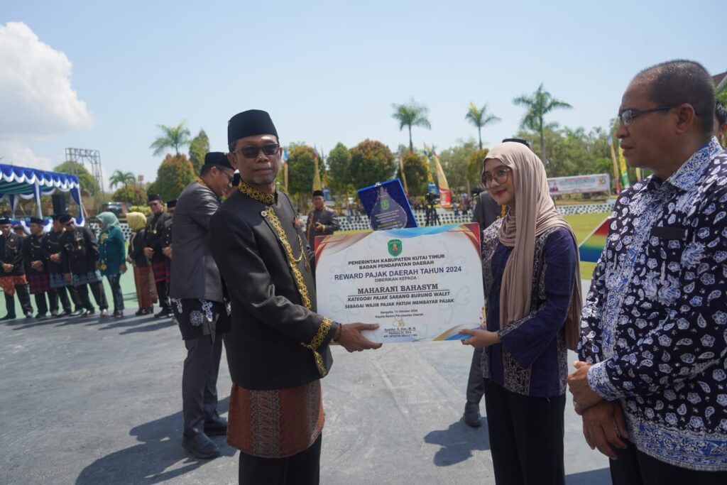 SANGATTA – Dalam peringatan Hari Ulang Tahun (HUT) ke-25 Kabupaten Kutai Timur (Kutim), Pjs Bupati Kutim Agus Hari Kusuma (AHK) menyerahkan berbagai penghargaan dan reward kepada para wajib pajak teladan. Upacara yang berlangsung khidmat ini menjadi momentum untuk mengapresiasi kontribusi masyarakat dalam pembayaran pajak daerah.