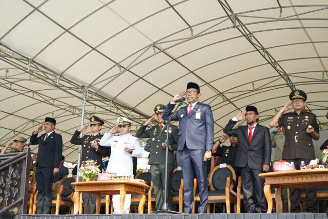SANGATTA – Pemerintah Kabupaten Kutai Timur (Pemkab Kutim) menggelar upacara memperingati Hari Sumpah Pemuda ke-96 di lapangan Kantor Bupati Kutai Timur pada Senin (28/10/2024) pagi. Upacara ini dihadiri sejumlah pejabat penting, termasuk Pjs Bupati Kutai Timur Agus Hari Kesuma yang bertindak sebagai Inspektur Upacara, Kepala Dinas Pemuda dan Olahraga Basuki Isnawan, Kepala Bapenda Syahfur, Ketua DPRD Kutai Timur Jimmy, serta anggota Forum Koordinasi Pimpinan Daerah (Forkopimda) lainnya.