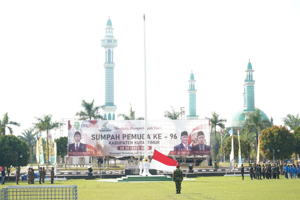 Dengan penuh khidmat, acara ini diikuti oleh peserta upacara dari berbagai elemen masyarakat dan pelajar, yang semakin memeriahkan suasana semangat persatuan yang diwariskan sejak Sumpah Pemuda tahun 1928. Komandan Upacara, Hamri, seorang siswa dari SMK Negeri 2 Sangatta Utara, memimpin jalannya prosesi dengan tertib dan lancar.