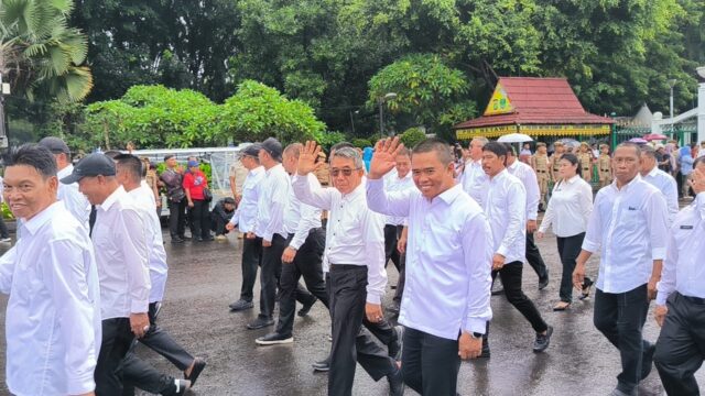 Para kepala daerah dibagi menjadi 30 pleton dengan masing-masing pleton terdiri dari puluhan peserta. Pasangan ARMY berada di pleton 13, berbaris bersama kepala daerah lainnya. Satu per satu mereka melangkah menuju Istana Merdeka yang menjadi lokasi utama pengambilan sumpah jabatan.