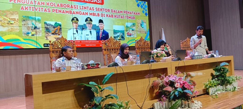 Forum sosialisasi tersebut menghadirkan tiga narasumber dari tingkat provinsi dan kabupaten. Mereka adalah Rani Nur Ainun Octaviani dari Dinas Penanaman Modal dan Pelayanan Terpadu Satu Pintu (DPMPTSP) Provinsi Kalimantan Timur, Rini Diana Setyowati dari Dinas Energi dan Sumber Daya Mineral (ESDM) Provinsi Kaltim, serta Simon dari Badan Pendapatan Daerah (Bapenda) Kutim. Ketiganya memaparkan aspek regulatif, teknis, dan fiskal dari implementasi Perda MBLB. Diskusi berlangsung interaktif, mencakup perizinan usaha pertambangan rakyat, standar lingkungan, hingga integrasi data antarinstansi.