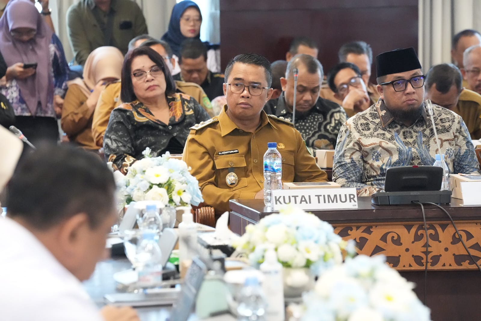 Teks: Wabup Kutim H Mahyunadi saat mengikuti High Level Meeting (HLM) Tim Pengendali Inflasi Daerah (TPID), Tim Percepatan dan Perluasan Digitalisasi Daerah (TP2DD), serta Rapat Koordinasi Makan Bergizi Gratis (MBG) tingkat Kaltim di Kantor Gubernur. (Fuji Pro Kutim)
