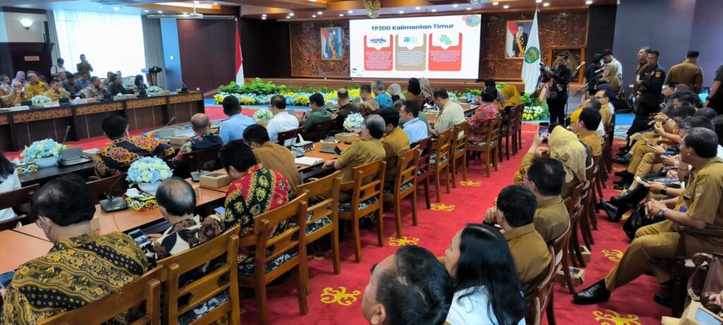 Pertemuan yang digelar di Ruang Ruhui Rahayu, Kantor Gubernur Kaltim, Selasa (5/8/2025), dibuka langsung oleh Gubernur Kaltim H Rudy Mas’ud secara daring dari Jakarta. Hadir secara luring Wakil Gubernur Kaltim H Seno Aji, Sekretaris Provinsi Sri Wahyuni, serta kepala daerah se-Kaltim, termasuk Wakil Bupati Kutai Timur (Wabup Kutim) H Mahyunadi bersama Kepala Dinas Tenaga Kerja dan Transmigrasi Kutim Roma Malau, Kepala Badam Pendapatan Daerah Kutim Syahfur, Kepala Dinas Ketahanan Pangan Kutim Ery Mulyadi, Kabag Ekonomi Setkab Kutim.Vita Nurhasanah. Kegiatan dimulai sejak pukul 08.50 WITA dan dihadiri pula oleh perwakilan Forkopimda, BUMN, BUMD, serta pelaku usaha.