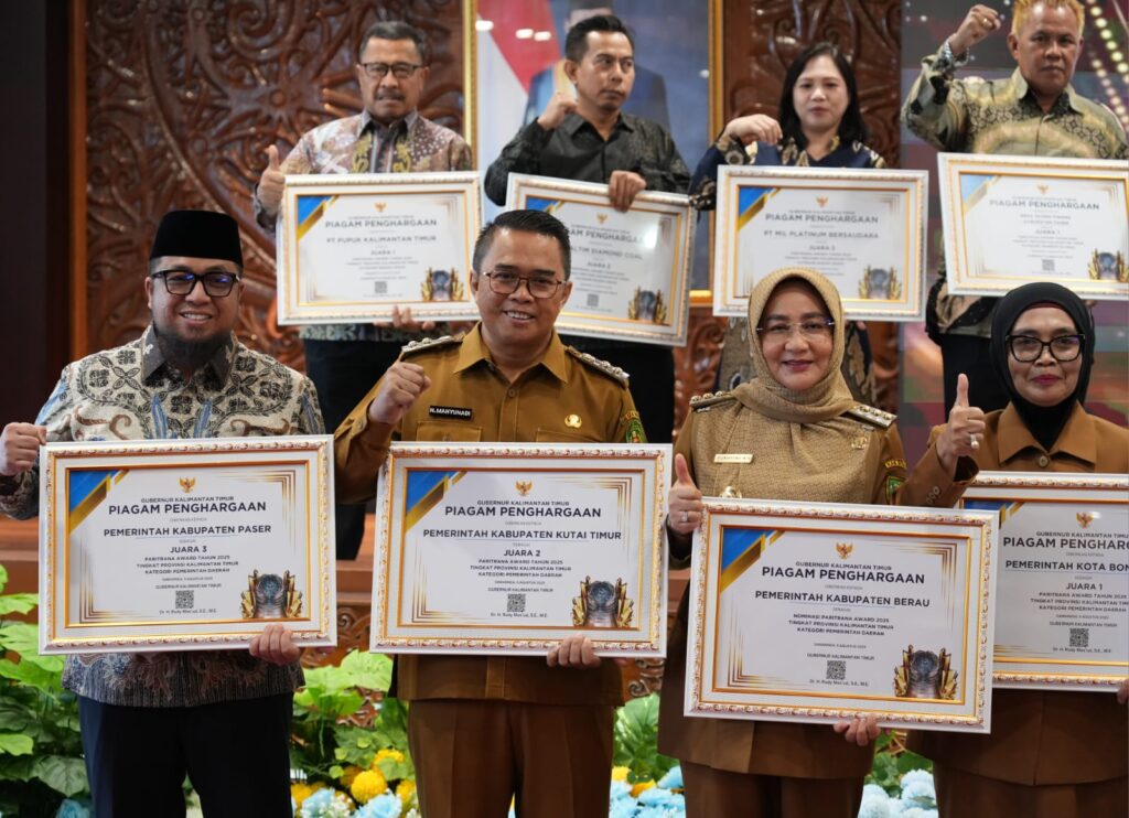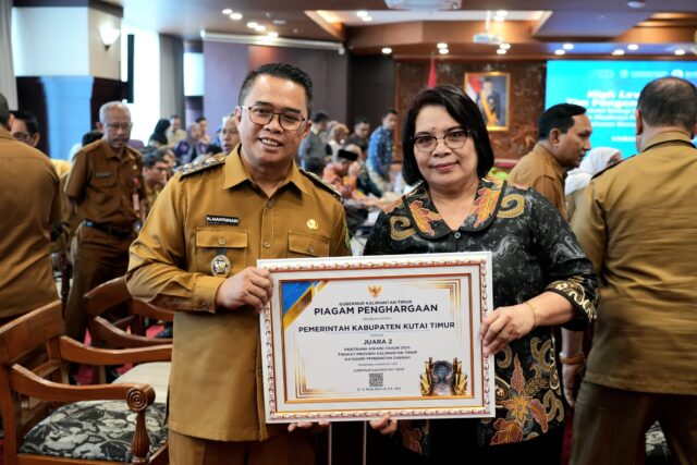 SAMARINDA – Pemerintah Kabupaten Kutai Timur (Pemkab Kutim) kembali mencatatkan langkah strategis dalam perlindungan sosial tenaga kerja. Pada ajang Paritrana Award 2025 tingkat Provinsi Kalimantan Timur (Kaltim), Kutim dianugerahi penghargaan untuk kinerja periode Januari–Desember 2024. Penghargaan itu diserahkan oleh Wakil Gubernur Kaltim, Seno Aji, kepada Wakil Bupati Kutim Mahyunadi mewakili Bupati, dalam seremoni di Ruang Ruhui Rahayu, Kantor Gubernur Kaltim, Selasa (5/8/2025).