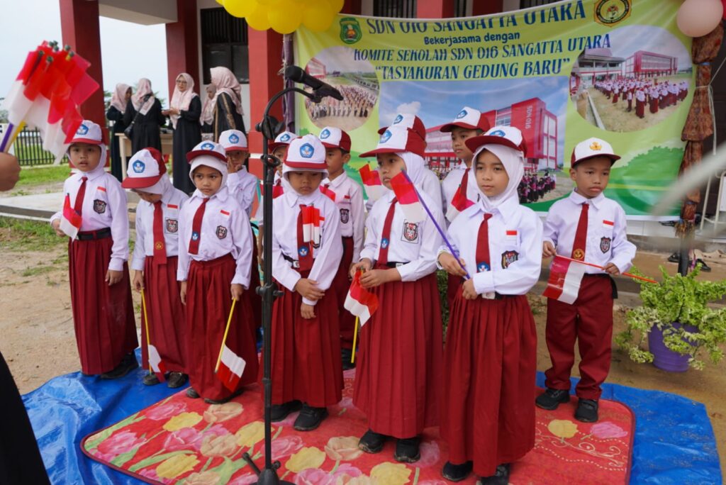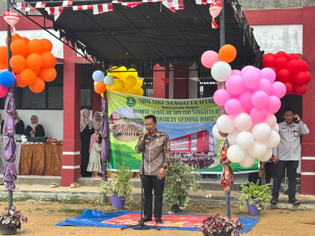 SANGATTA – Rabu pagi (13/8/2025), halaman SDN 016 Sangatta Utara terasa berbeda dari biasanya. Di tengah lapangan anak-anak berbaris rapi menyambut tamu. Hari itu, sekolah yang berdiri dari pemekaran SDN 002 Sangatta Utara resmi menggunakan ruang kelas barunya.