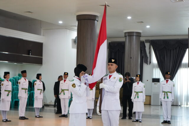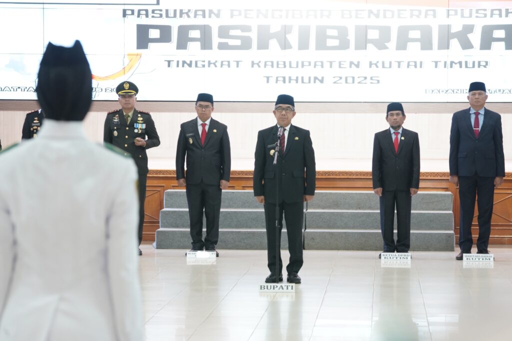Pasukan Pengibar Bendera Pusaka (Paskibraka) Kutim resmi dikukuhkan menjelang peringatan Hari Ulang Tahun (HUT) ke-80 Kemerdekaan Republik Indonesia. Foto: Habibah Prokutim