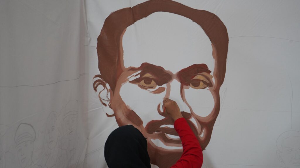 Lukisan raksasa tersebut menampilkan beragam visual, mulai dari kisah perjuangan para pahlawan, perjalanan panjang bangsa Indonesia. Kain sepanjang 45 meter itu membentang tanpa putus, seolah melukiskan semangat kemerdekaan yang tidak pernah terhenti.