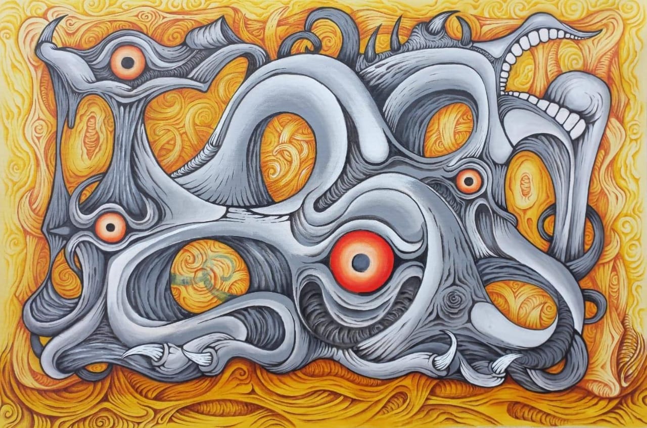 “Akar Budaya” – Acrylic di atas Kanvas (Karya: Agung Suroso)