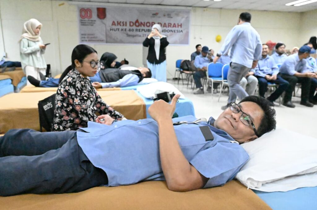 Suasana kegiatan aksi donor darah HUT ke-80 RI gelaran KPC. Foto: Istimewa