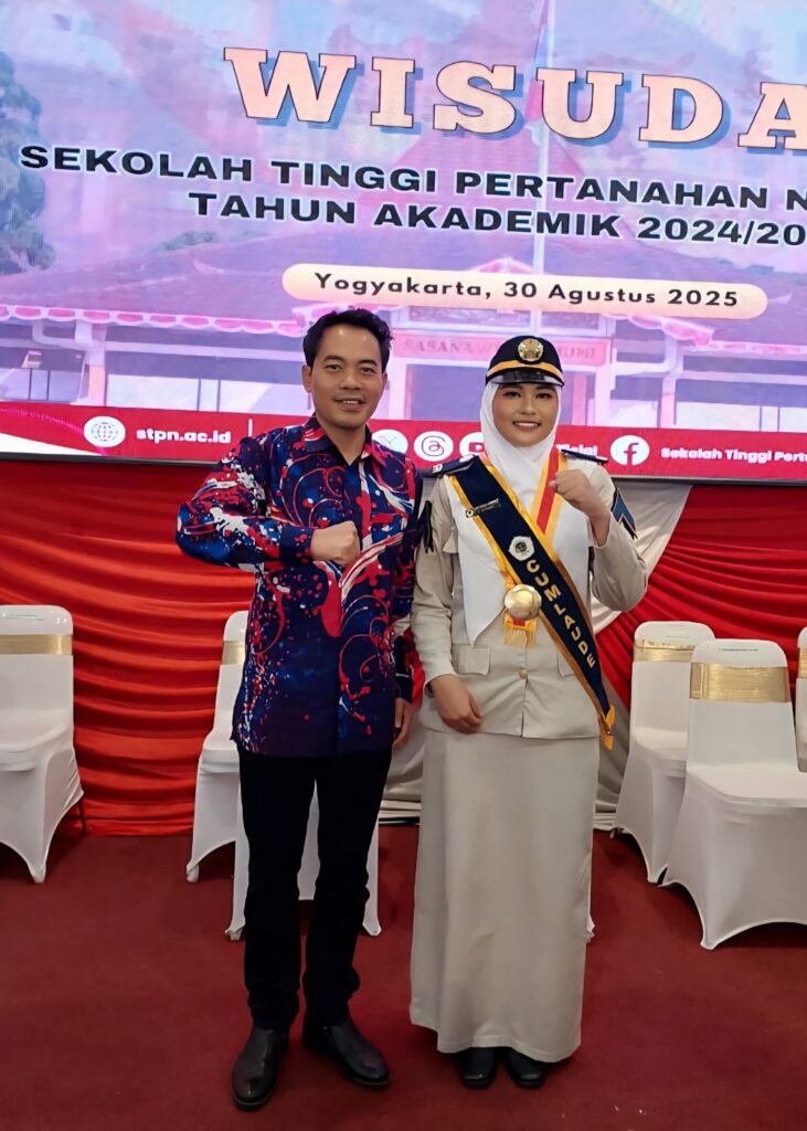 YOGYAKARTA – Sabtu, 30 Agustus 2025, Aula Sekolah Tinggi Pertanahan Nasional (STPN) Yogyakarta menjadi saksi lahirnya generasi baru ahli pertanahan. Sebanyak 13 taruna asal Kutai Timur (Kutim) resmi diwisuda dalam program Diploma I Pengukuran dan Pemetaan Kadasteral. Upacara pengukuhan itu dihadiri langsung oleh Menteri ATR/BPN Nusron Wahid, Wakil Menteri ATR/BPN Ossy Dermawan, civitas akademika STPN, serta Plt. Asisten Pemkesra Kutim yang mewakili Bupati.