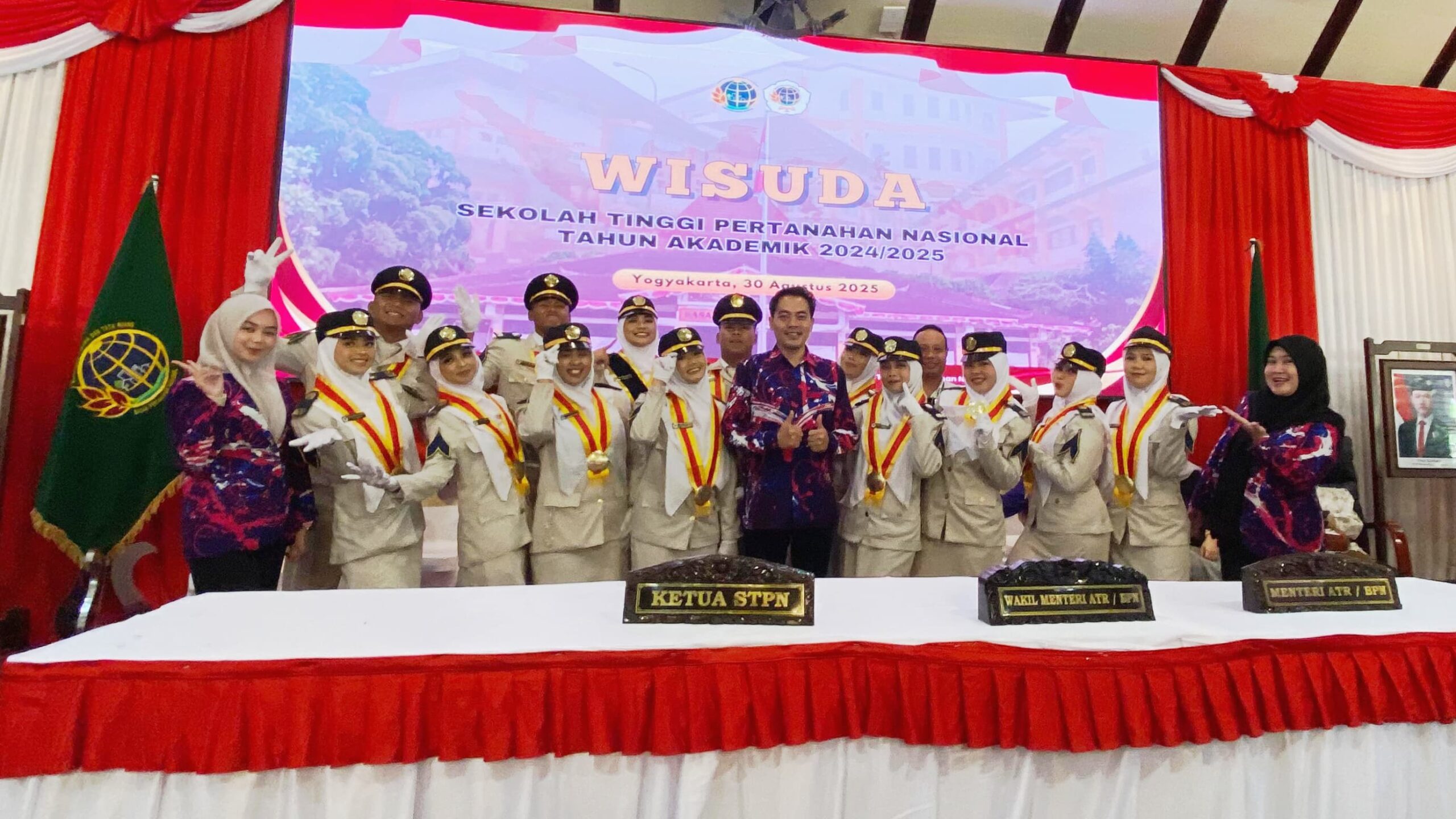 YOGYAKARTA – Sabtu, 30 Agustus 2025, Aula Sekolah Tinggi Pertanahan Nasional (STPN) Yogyakarta menjadi saksi lahirnya generasi baru ahli pertanahan. Sebanyak 13 taruna asal Kutai Timur (Kutim) resmi diwisuda dalam program Diploma I Pengukuran dan Pemetaan Kadasteral. Upacara pengukuhan itu dihadiri langsung oleh Menteri ATR/BPN Nusron Wahid, Wakil Menteri ATR/BPN Ossy Dermawan, civitas akademika STPN, serta Plt. Asisten Pemkesra Kutim yang mewakili Bupati.