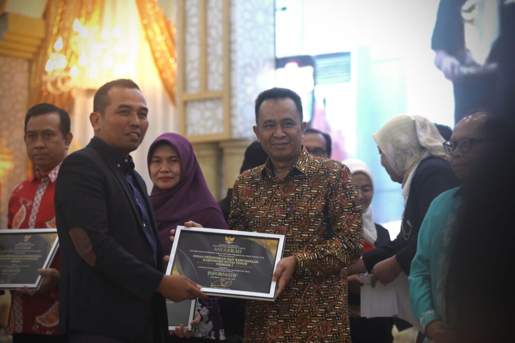 1. Dinas Pendidikan dan Kebudayaan Kutim – Peringkat 1 kategori Perangkat Daerah Kabupaten/Kota dengan poin sempurna 100.
