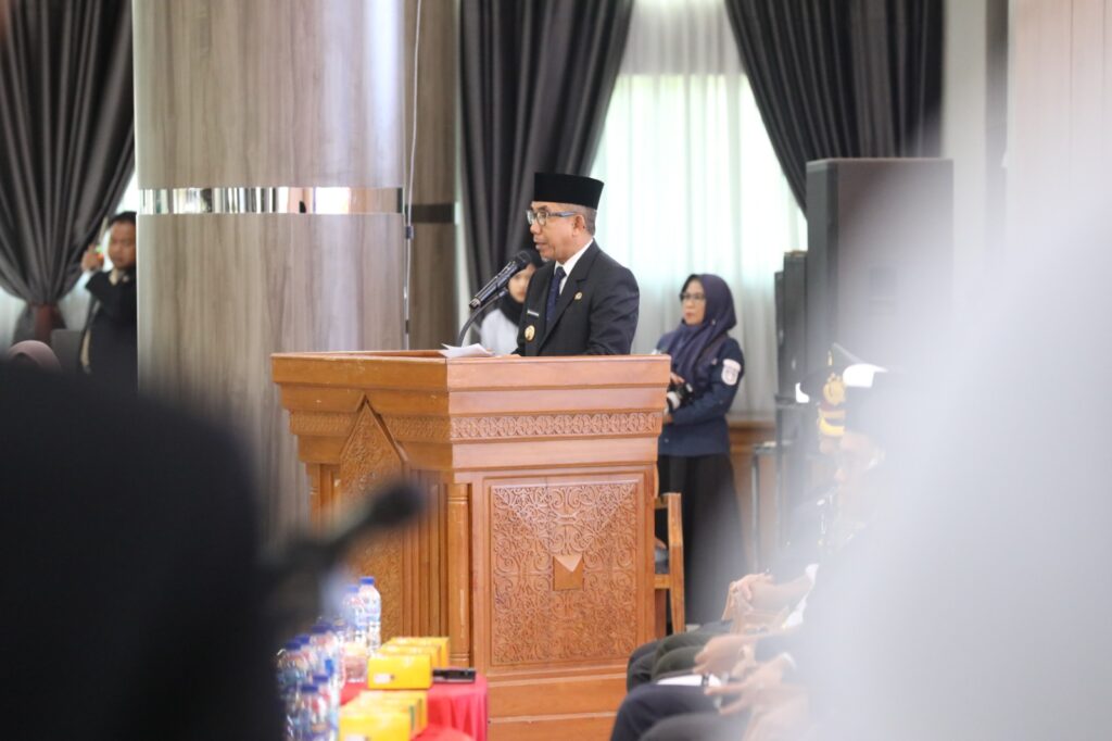 Bupati Kutim Ardiansyah Sulaiman memberikan arahan usai menyematkan penghargaan Satyalancana Karya Satya. Foto: Irfan/Pro Kutim