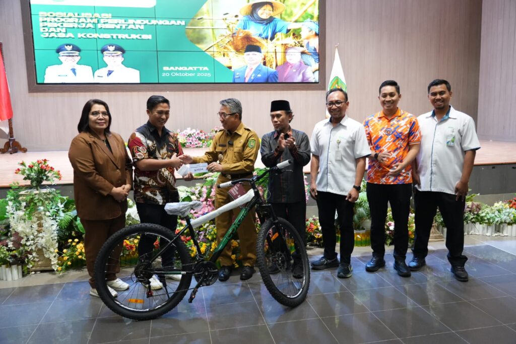 SANGATTA – Suasana di Ruang Meranti, Kantor Bupati Kutai Timur (Kutim), Senin (20/10/2025), mendadak riuh penuh gelak tawa. Dalam kegiatan Sosialisasi Program Perlindungan Pekerja Rentan dan Pekerja Konstruksi yang digelar BPJS Ketenagakerjaan bekerja sama dengan Pemerintah Kabupaten Kutai Timur (Pemkab Kutim), suasana formal berubah cair ketika panitia memberikan hadiah sepeda dengan cara tak biasa.