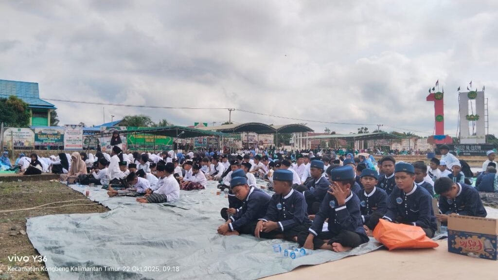 KOMBENG – Langit pagi di Lapangan Sepak Bola Desa Makmur Jaya, Kecamatan Kombeng, Kabupaten Kutai Timur (Kutim), Rabu (22/10/2025), memantulkan semangat ribuan santri dari berbagai pesantren, madrasah, hingga sekolah umum. Mereka datang membawa spanduk dan panji bertuliskan doa dan harapan. Suara lantunan ayat suci Al-Qur’an menggema, membuka peringatan Hari Santri Nasional ke-10 di Kutim dengan suasana khidmat namun penuh sukacita.