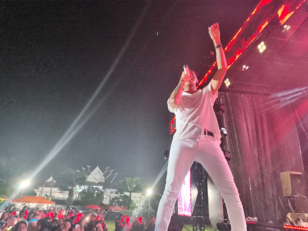 SANGATTA – Mantan vokalis band Drive yang kini berkarir sebagai penyanyi, Anji membuktikan kelasnya sebagai seorang entertainer sejati saat tampil memukau di Pekan Raya Kutim (PRK) Expo 2025, Kamis (23/10/2025) malam pada pukul 23.30 Wita di Lapangan Alun-alun Bukit Pelangi. Penampilan dramatis ini terjadi di tengah cuaca ekstrem yang melanda kawasan Bukit Pelangi.