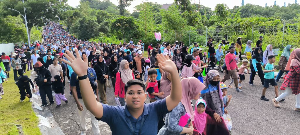 SANGATTA – Pagi masih basah oleh embun ketika ribuan warga Kutai Timur (Kutim) mulai berdatangan ke halaman Kantor Bupati. Dari kejauhan, terdengar samar riuh tawa dan obrolan ringan peserta yang datang sejak pukul 05.30 WITA. Hari itu, Sabtu pagi, langit cerah Sangatta menjadi saksi antusiasme masyarakat dalam memeriahkan jalan sehat memperingati Hari Ulang Tahun ke-26 Kabupaten Kutim.