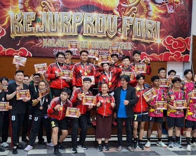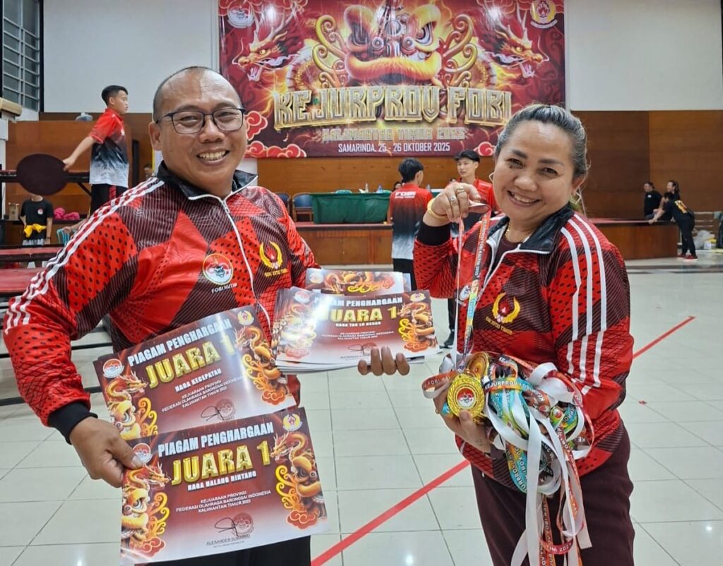 SAMARINDA – Gemuruh sorak dan tepuk tangan menggema di arena Kejuaraan Provinsi (Kejuprov) Federasi Olahraga Barongsai Indonesia (FOBI) Kalimantan Timur (Kaltim) 2025 di Samarinda, Sabtu (25/10/2025) malam. Di antara semarak naga yang menari dan irama tabuh yang menggetarkan, kontingen Kutai Timur (Kutim) tampil sebagai bintang panggung. Menyapu bersih seluruh medali emas di kategori naga. Kemenangan ini bukan semata hasil dari keberuntungan. Di balik tiap gerakan lincah dan kekompakan para atlet, tersimpan disiplin, kerja keras, dan tekad panjang yang dibangun berbulan-bulan lamanya.