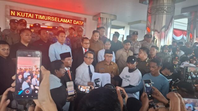 Massa mulai berdatangan dan memadati lobi Kantor Bupati Kutim sekitar pukul 16.00 WITA. Bupati Kutim H Ardiansyah Sulaiman, didampingi Wakil Bupati H Mahyunadi, Kapolres Kutim AKBP Fauzan Arianto, serta Kepala Satpol PP Fata Hidayat, langsung menemui perwakilan pengunjuk rasa untuk menerima aspirasi mereka.