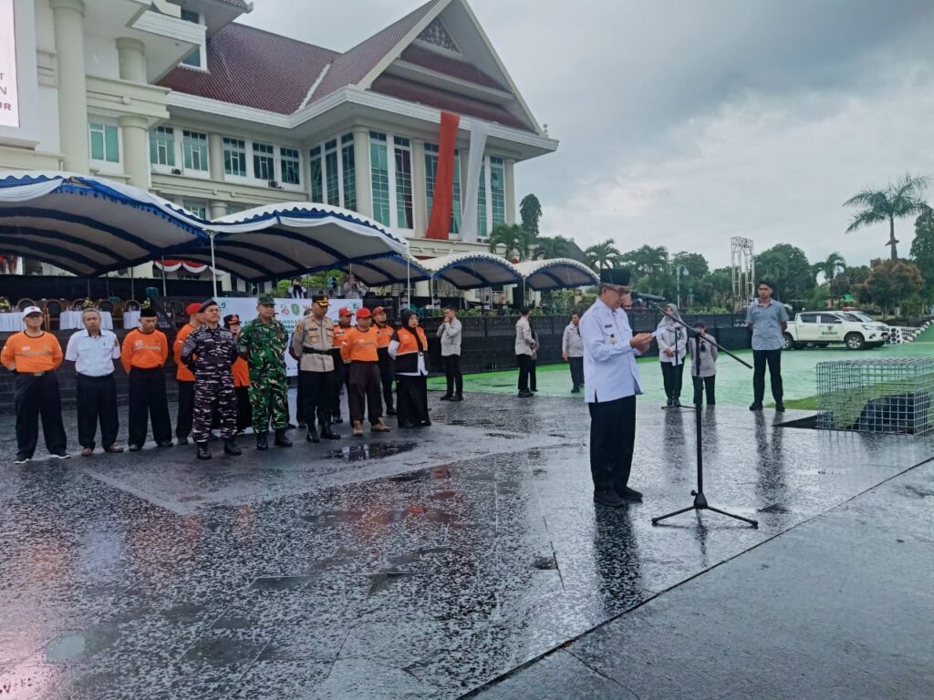 Bupati Kutim H Ardiansyah Sulaiman, hadir langsung sebagai Komandan Upacara sekaligus membuka kegiatan tersebut secara resmi. Dalam sambutannya, ia menegaskan pentingnya sinergi lintas daerah dalam membangun sistem penanggulangan bencana yang tangguh, terencana, dan berkelanjutan.