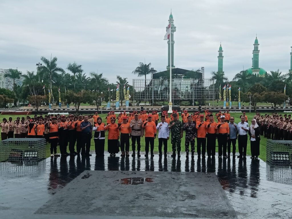 Ratusan relawan dari berbagai kabupaten dan kota di Kalimantan Timur (Kutim) berkumpul di Halaman Kantor Bupati Kutim, Rabu (29/10/2025), mengikuti Apel Kesiapsiagaan dan Pembukaan Pelatihan Manajemen Bencana Tingkat Dasar yang digelar oleh Badan Amil Zakat Nasional (BAZNAS). (Fathul Pro Kutim)