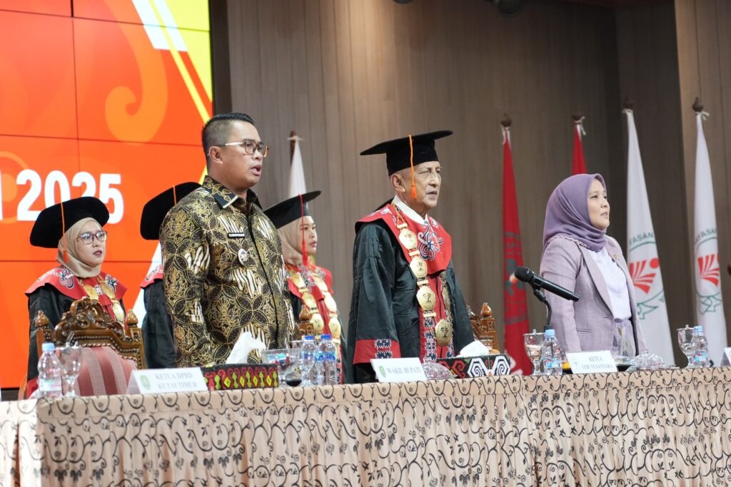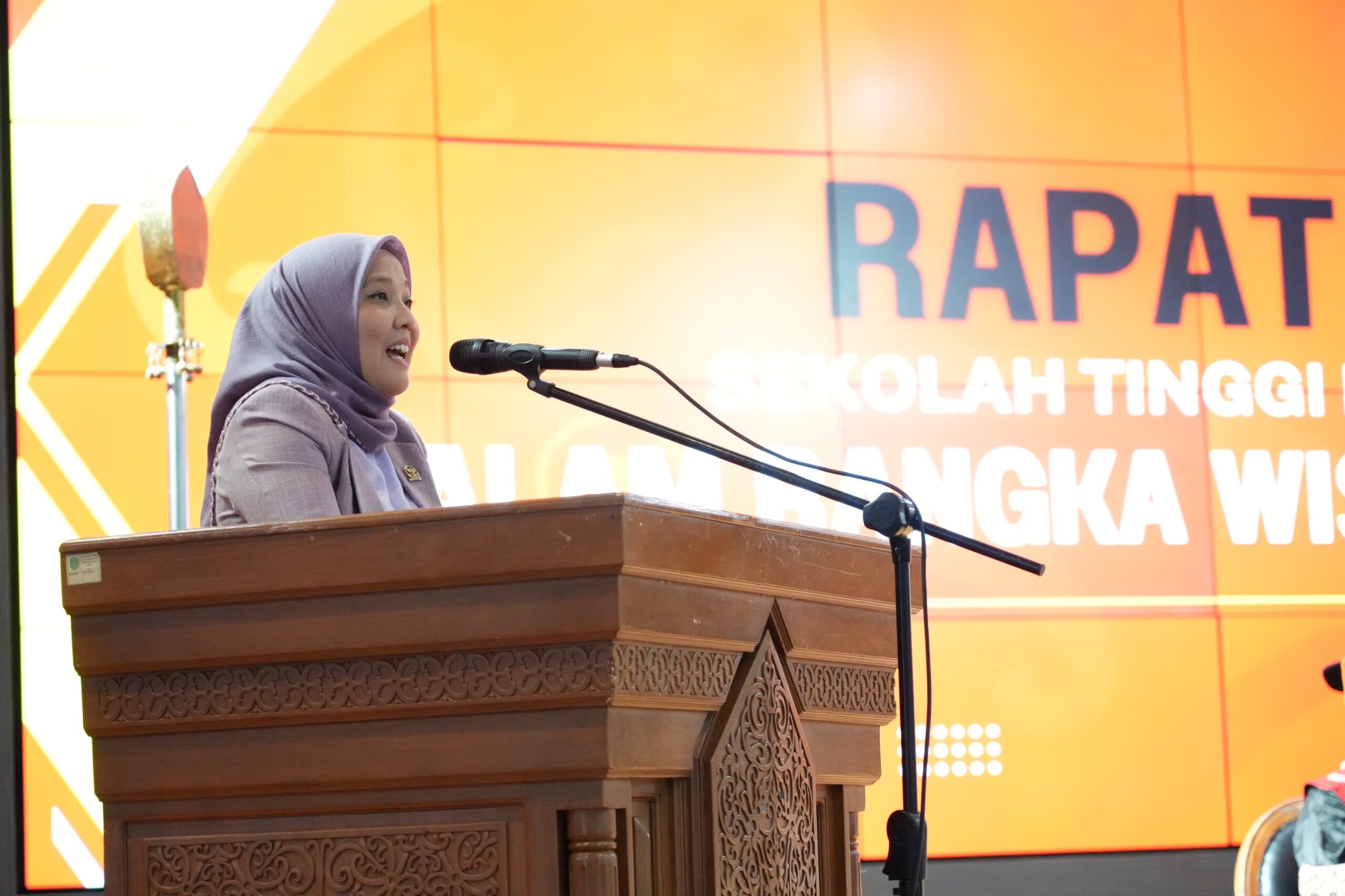 Aji Mirni Mawarni saat berikan sambutan di Wisuda XIII STIENUS Tahun 2025. Foto : Nasruddin/Pro Kutim.