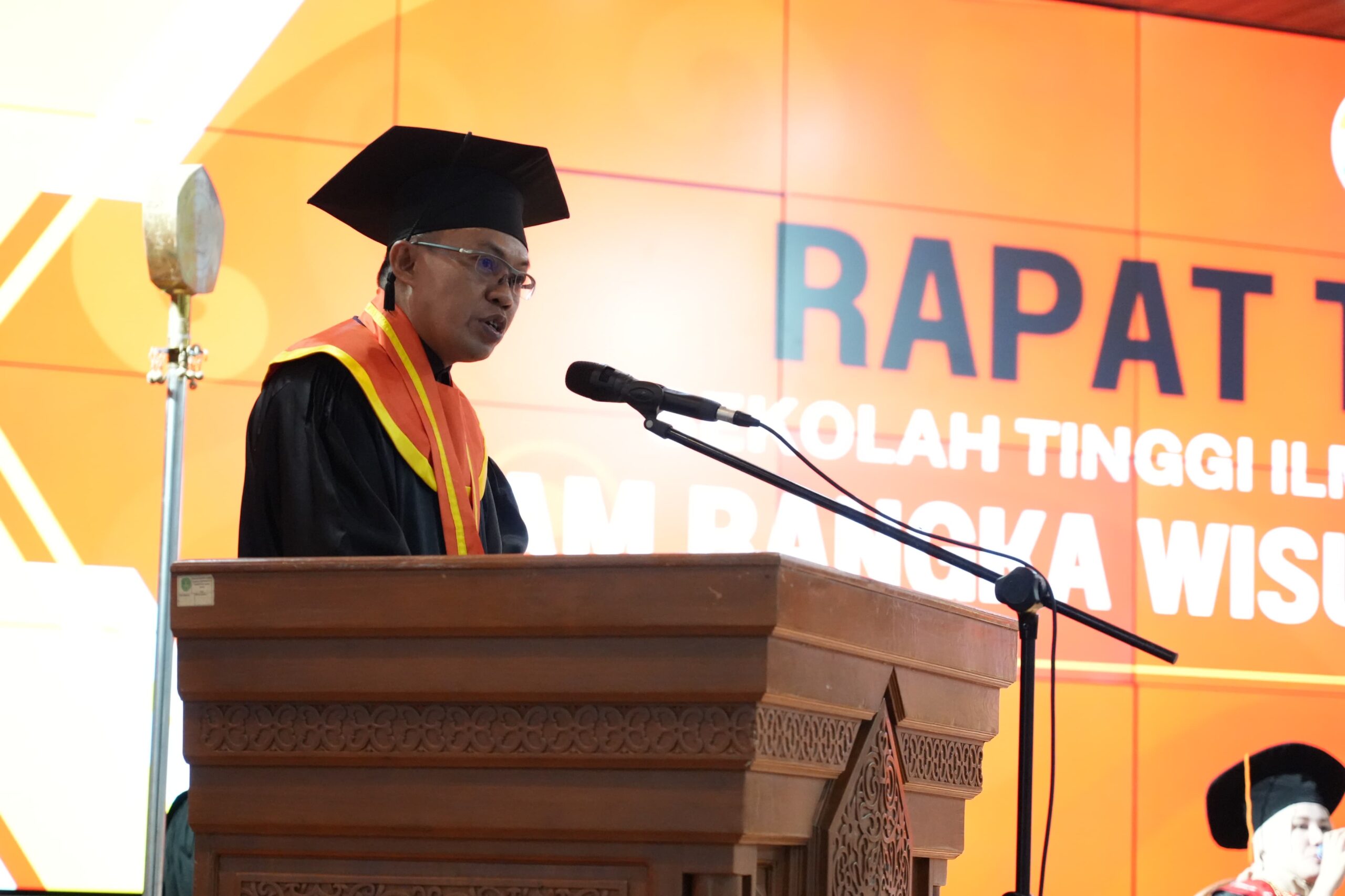 “Puji syukur ke hadirat Allah SWT atas rahmat dan karunia-Nya, sehingga kita dapat berkumpul di momen bersejarah ini. Hari ini bukan sekadar seremoni kelulusan, tetapi penanda perjalanan panjang penuh usaha, doa, dan waktu,” ucapnya dalam pidato yang menggugah.
