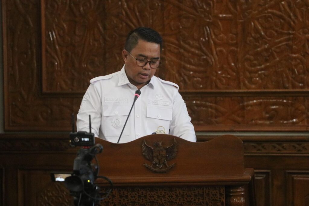 Wakil Bupati Kutim Mahyunadi menyampaikan Nota Pengantar tentang Rancangan Kebijakan Umum Anggaran dan Prioritas Plafon Anggaran Sementara (KUA-PPAS) Tahun Anggaran 2026. Foto: Maulana/ Pro Kutim