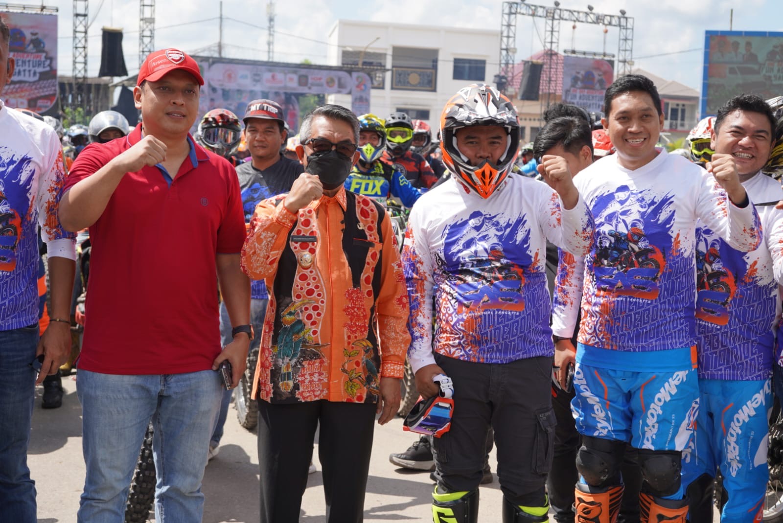 Uniknya, Wakil Bupati Mahyunadi tak hanya hadir seremonial, tetapi turut serta memacu motornya di jalur trail, menunjukkan semangat sportivitas dan kecintaan pada olahraga ekstrem.