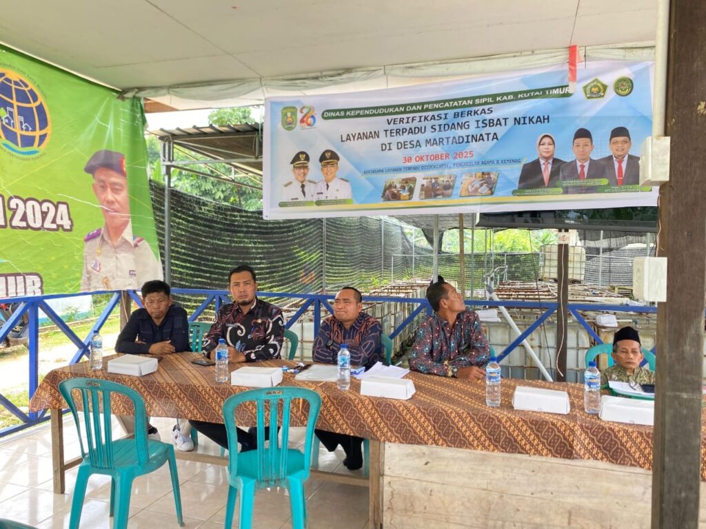 TELUK PANDAN – Pemerintah Kabupaten Kutai Timur (Pemkab Kutim) kembali menunjukkan kehadirannya hingga ke pelosok desa melalui layanan jemput bola Sidang Isbat Nikah Terpadu. Program yang digelar oleh Dinas Kependudukan dan Pencatatan Sipil (Disdukcapil) bekerja sama dengan Pengadilan Agama dan Kementerian Agama Kutim itu berlangsung pada Rabu (30/10/2025) di Dusun Sidrap, Desa Martadinata, Kecamatan Teluk Pandan, Kabupaten Kutim.