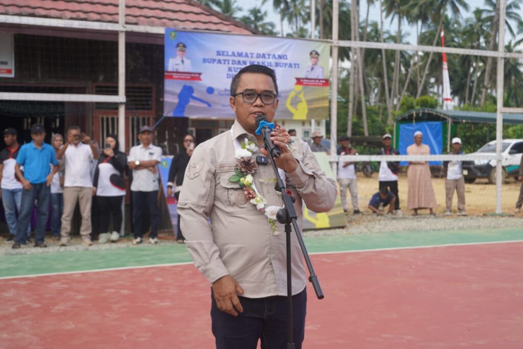 Wakil Bupati Kutim Mahyunadi saat memberikan arahan di Turnamen Bila Voli Cup 1 di Desa Saka. Foto: Bagus/Pro Kutim