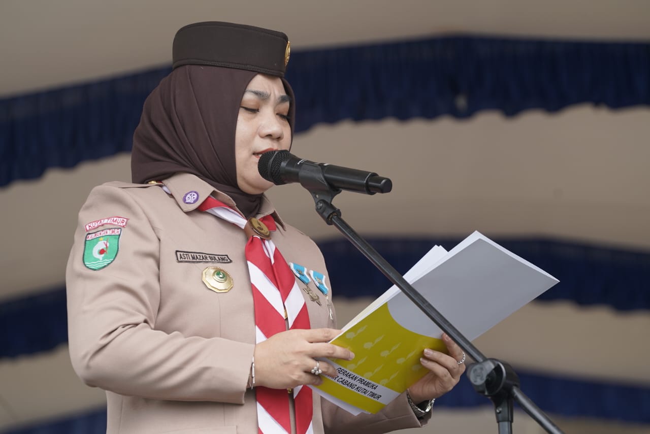 Ketua Kwarcab Gerakan Pramuka Kutim Asti Mazar, saat memberikan sambutan. Foto: Nupiansyah/Pro Kutim