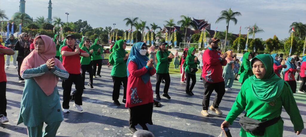 Para peserta datang dari TP PKK Kutim, Dharma Wanita Persatuan (DWP) Kutim, serta sejumlah organisasi perempuan di lingkungan pemerintah daerah. Dari TP PKK Kutim ada istri Bupati Siti Robiah dan istri Wabup Masriati, turut membaur dalam barisan senam, mengikuti irama musik yang memandu gerakan-gerakan ritmis di halaman Kantor Bupati di Bukit Pelangi. Senyum merekah, tubuh bergerak selaras, dan suasana penuh sukacita mengalir seperti arus yang menautkan satu sama lain dalam harmoni.