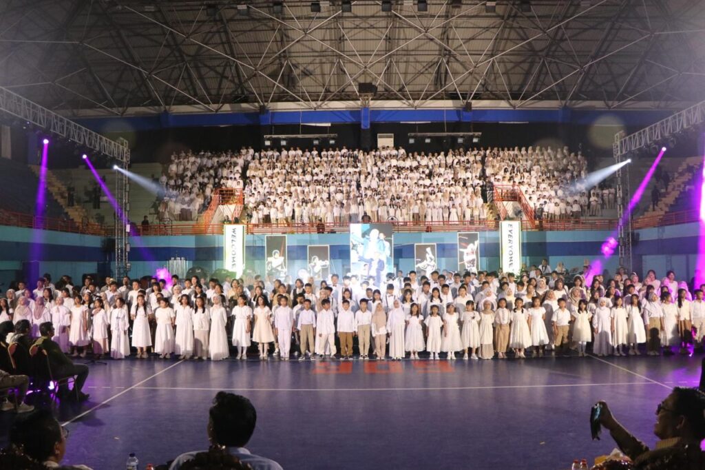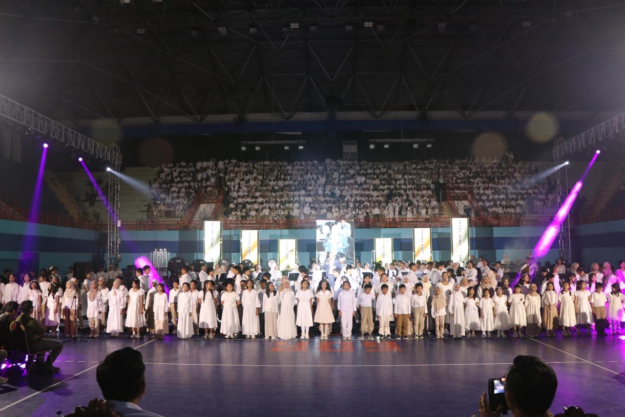 Di bawah sorot lampu panggung yang berkilau, 1.000 anak berdiri berbaris rapi. Mereka adalah perwakilan siswa-siswi YPPSB dari jenjang sekolah dasar hingga sekolah menengah atas. Tatapan mata mereka fokus ke satu arah, mengikuti setiap gerak tangan sang konduktor, Hendra Yanuardi, yang memimpin paduan suara dengan penuh penghayatan. Dalam sekejap, GOR Kudungga yang biasanya identik dengan olahraga berubah menjadi ruang konser megah, dipenuhi lantunan suara yang jernih dan penuh semangat.