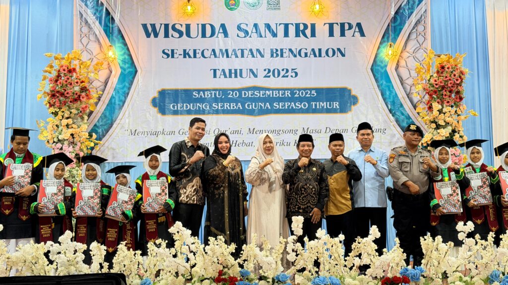 BENGALON – Pemerintah Kabupaten Kutai Timur (Kutim) terus menunjukkan komitmennya dalam pembangunan sumber daya manusia berbasis nilai keagamaan. Hal tersebut tercermin dalam pelaksanaan Wisuda Santri TPA se-Kecamatan Bengalon Tahun 2025 yang digelar pada Sabtu (20/12/2025) di Gedung Serbaguna Desa Sepaso Timur, Kecamatan Bengalon.