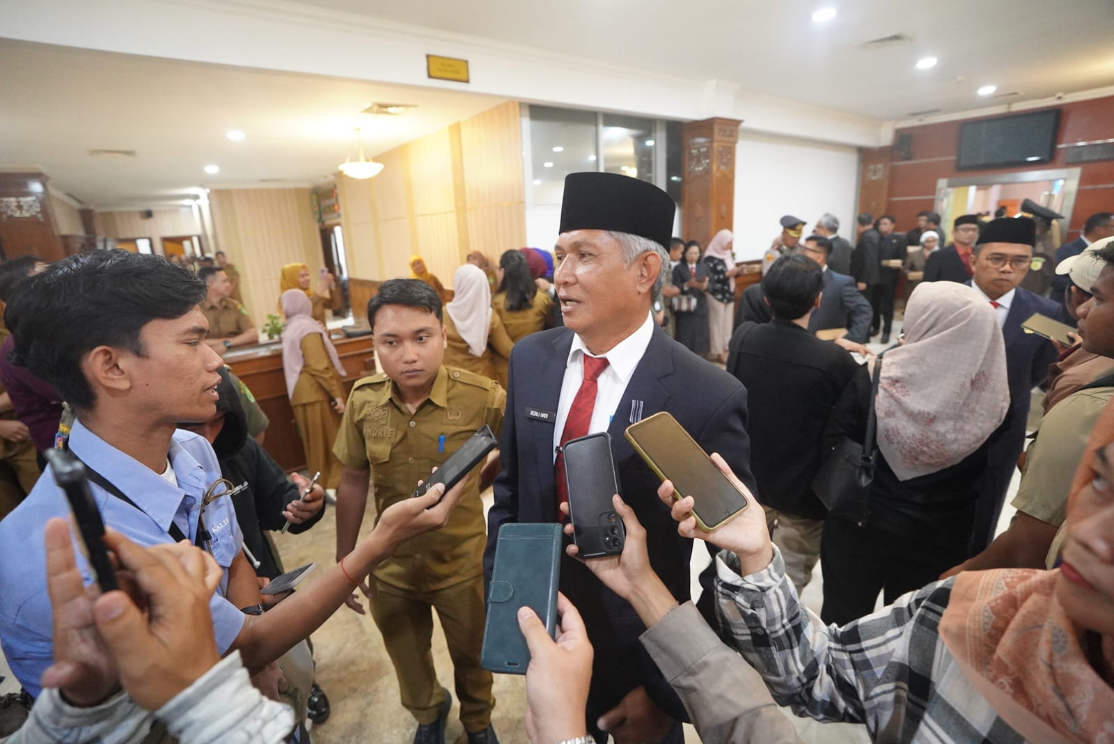 Seskab Kutim Rizali Hadi saat diwawancarai wartawan. Foto: Irfan/Pro Kutim