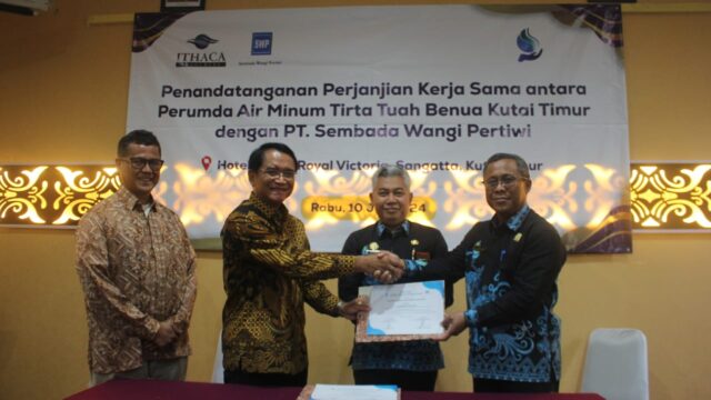 Suasana penandatanganan Perjanjian Kerja Sama (PKS) Perusahaan Umum Daerah Air Minum Tirta Tuah Benua Kutai Timur (Perumdam TTB Kutim) dan PT Sembada Wangi Pertiwi (SWP). Foto: Istimewa SANGATTA- Menandai langkah bersejarah bagi penyediaan layanan air minum berkualitas di Kutai Timur (Kutim), Perusahaan Umum Daerah Air Minum Tirta Tuah Benua Kutai Timur (Perumdam TTB Kutim) dan PT Sembada Wangi Pertiwi (SWP)...