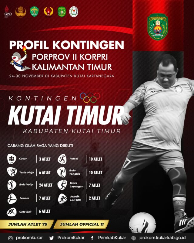 Rincian cabang olahraga (cabor) yang diikuti oleh Bapor KORPRI Kutim. Foto: Ist for Pro Kutim SANGATTA- Kabupaten Kutai Timur (Kutim) turut ambil bagian pada pelaksanaan Pekan Olahraga Provinsi (Porprov) II Korps Pegawai Republik Indonesia (KORPRI) Kalimantan Timur (Kaltim) di Kabupaten Kutai Kartanegara (Kukar) tahun 2022 ini. Kegiatan dimaksud menjadi agenda rutin guna mempererat tali silaturahmi yang diprakarsai Badan Pembina Olahraga...