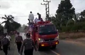 Momen penyemprotan desinfektan di Muara Wahau.(Ist)