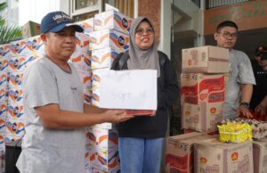 Pemkab Kutim secara simbolis menyalurkan bantuan paket sembako untuk warga terdampak banjir Sangatta. Foto: Miftah/Rosma Pro Kutim